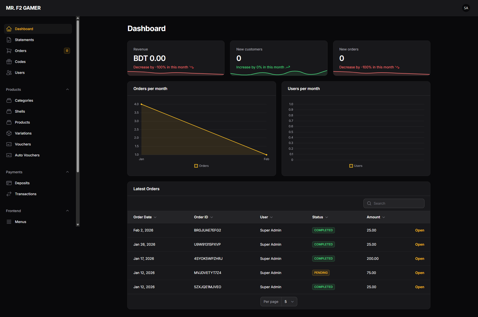 Latest 5 Orders